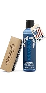 Are you looking to Refresh your shoes Look no further than the all natural Refreshed Shoe Cleaner Starter Kit. The kit contains one bottle of our patented Cleaner and Conditioner. The kit comes complete with a specially designed scrub brush to help you dislodge any dirt or debris. This kit is great to give Refreshed a try, or to give as a gift to a friend. Step 1: CLEANSE Our products cleanse and clean your shoes, ridding them of caked on debris and dirt. Together with our patented scrub brush, our all natural solution will magically eliminate signs of use, making your shoes sparkling fresh. Step 2: CONCEAL Once you've cleaned your shoes with our cleaning products, our concealer product helps hide deep abrasions and scratches. The self contained TouchUp kit has an applicator sponge and a natural formula that will repair even the toughest of scratches. Step 3: COATING With your shoes now cleaned and conditioned, we provide a breakthrough formula to cover and coat your newly ref